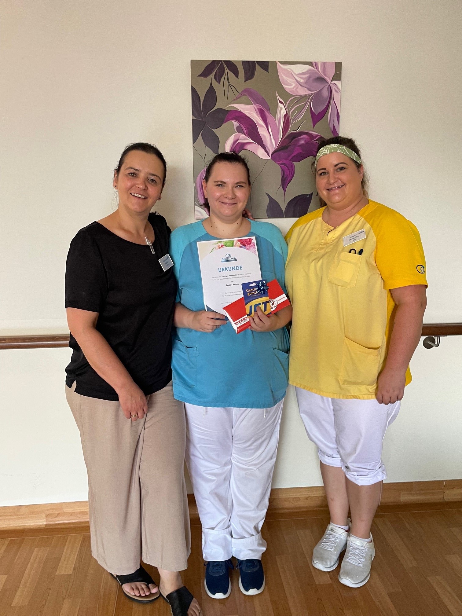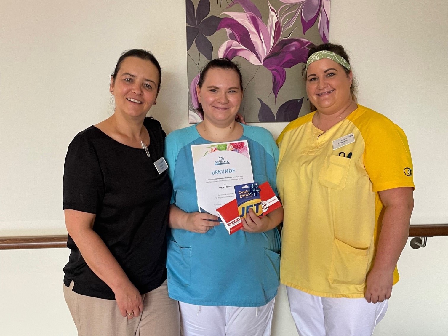 Das SeneCura Sozialzentrum Frantschach-St. Gertraud hat etwas Besonderes zu feiern! Mitarbeiterin Katrin Egger feiert ihren Geburtstag und heuer auch das 5- jährige Dienstjubiläum. Dem gesamten Team war es eine große Freude ihr zu diesen beiden Anlässen zu gratulieren und Hausleitung Gertraud Stückler überreichte ihr auch ein kleines Geschenk.