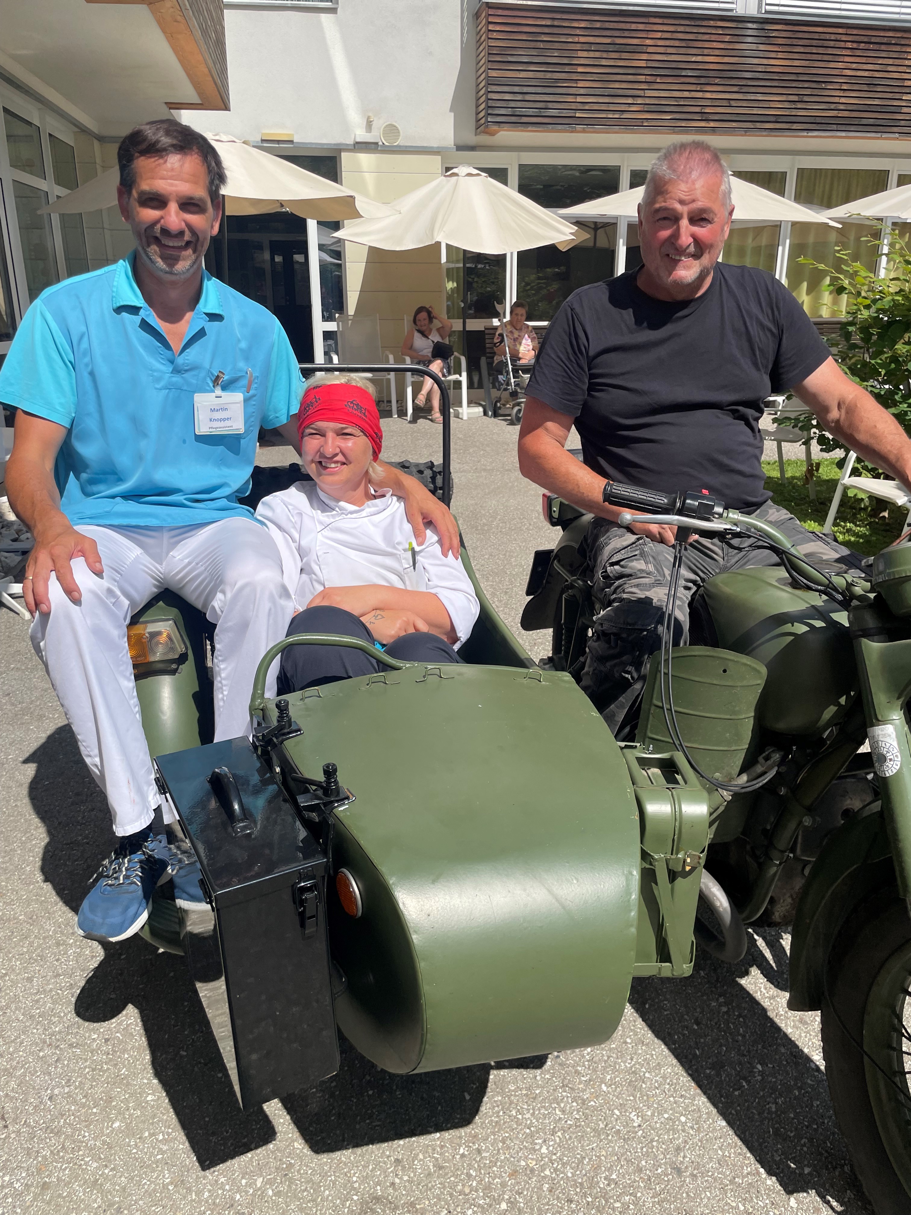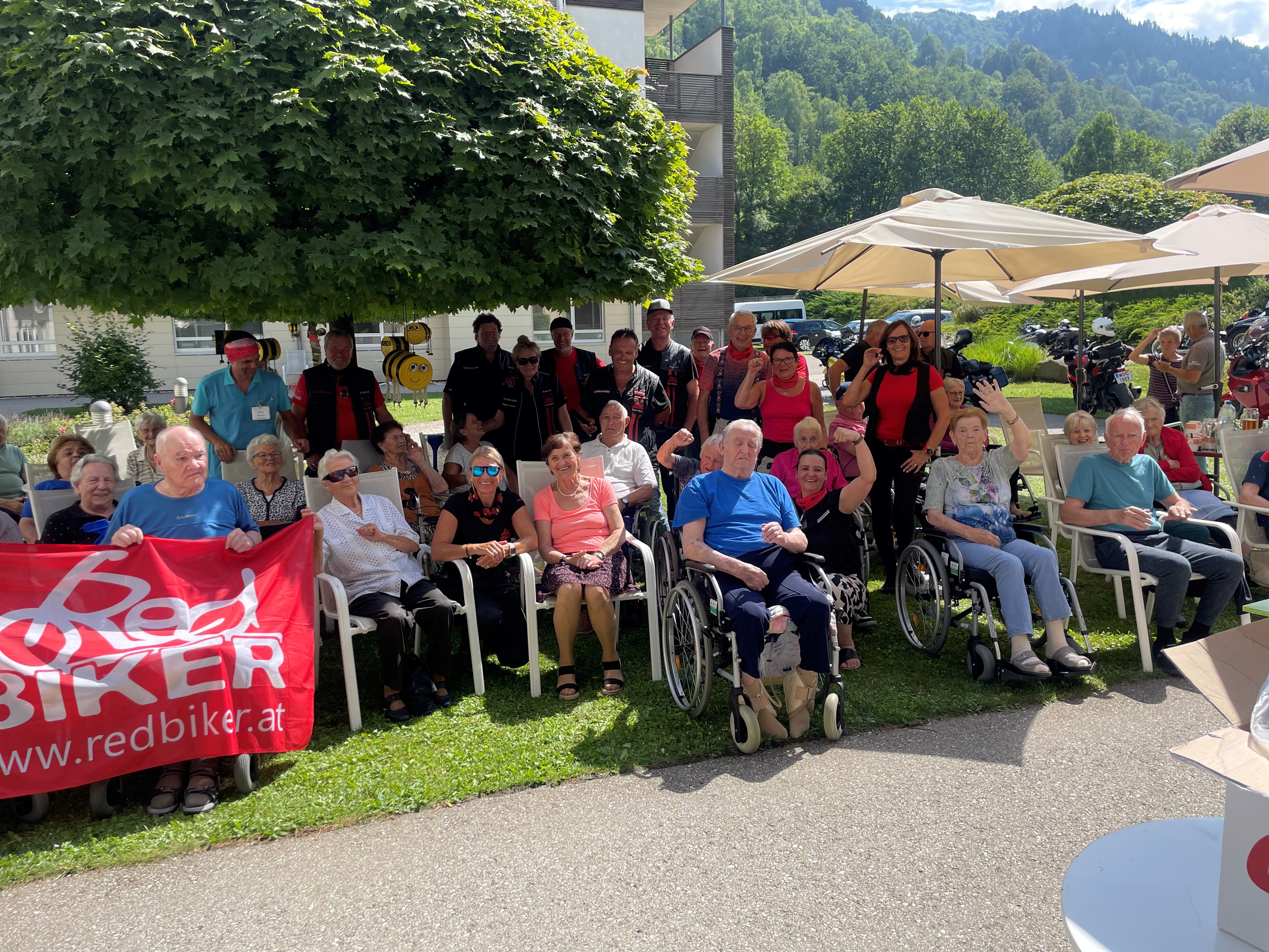 Kürzlich durften sich die Bewohner:innen des SeneCura Sozialzentrums Frantschach-St. Gertraud über einen ganz besonderen Besuch freuen. Die „Red Biker“ besuchten das Haus mit 15 Motorrädern. Jedes Motorrad und jeder Fahrer wurde vorgestellt, es wurde gemeinsam gesungen und Eis gegessen. Das besondere Highlight: die Möglichkeit in einer Beiwagenmaschine mitzufahren.
