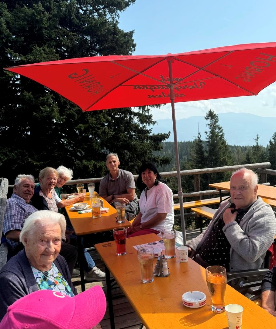 Als Lavanttaler:in kennt man ausnahmslos die Offnerhütte. Bei herrlichem Sonnenschein und bester Laune machten sich heute einige Bewohner:innen des SeneCura Sozialzentrums Frantschach – St. Gertraud auf den Weg zur Saualpe und somit wurden so einige Herzenswünsche zur Realität. Dort angekommen genossen sie die herrliche Aussicht, die gesunde Almluft und natürlich die großartige Küche. Die kräftige Rindssuppe war genauso lecker, wie der deftige Schweinsbraten oder das knusprige Schnitzel – es wurde nach Herzenslust geschlemmt. Natürlich durfte auch ein Nachtisch, der berühmte Reindling der bekannten Wirtsleute, nicht fehlen. Ein Kärntner Reindling, gefüllt mit Zwetschgen und Heidelbeeren – ein wahrer Genuss! Die Bewohner:innen fühlten sich rundum wohl und genossen den herrlichen spätsommerlichen Tag in vollen Zügen!