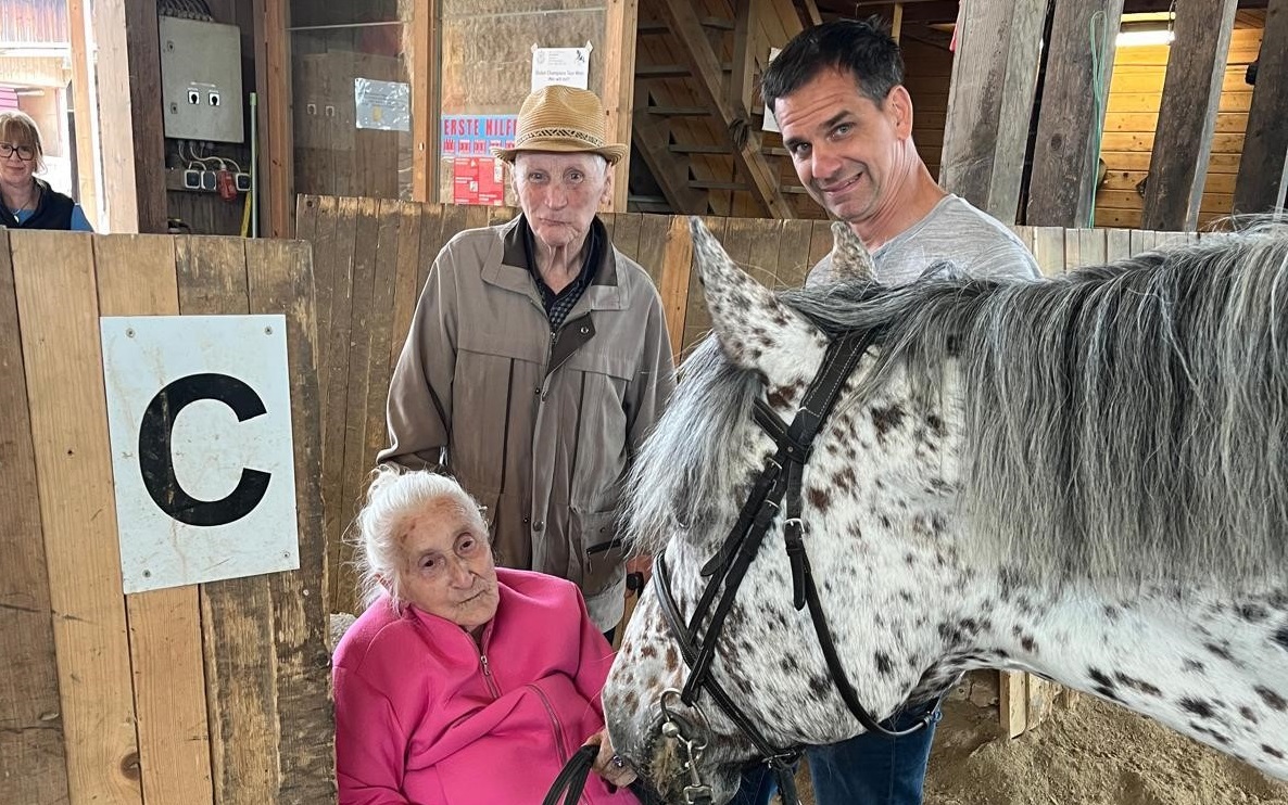 Im Rahmen der Erfüllung eines Herzenwunsches bekamen die Bewohner:innen des SeneCura Frantschach St. Gertraud und die Gäste des Tageszentrums die Möglichkeit, einen wunderschönen Tag auf einem Reiterhof zu verbringen. Es wurde eine Führung mit der Reiterhoftierärztin unternommen, die Bewohner:innen erhielten die Möglichkeit Pferde zu füttern, sie zu liebkosten und sogar darauf zu reiten. „Wir bedanken uns herzlichst für die Bemühungen der Mitarbeiter:innen, den Bemühungen der Damen und Herren des Reiterhofs und allen ehrenamtlichen Mitarbeiter:innen für den wunderschönen, aufregenden Tag.“, so Gertraud Stückler, Hausleitung des SeneCura Frantschach.