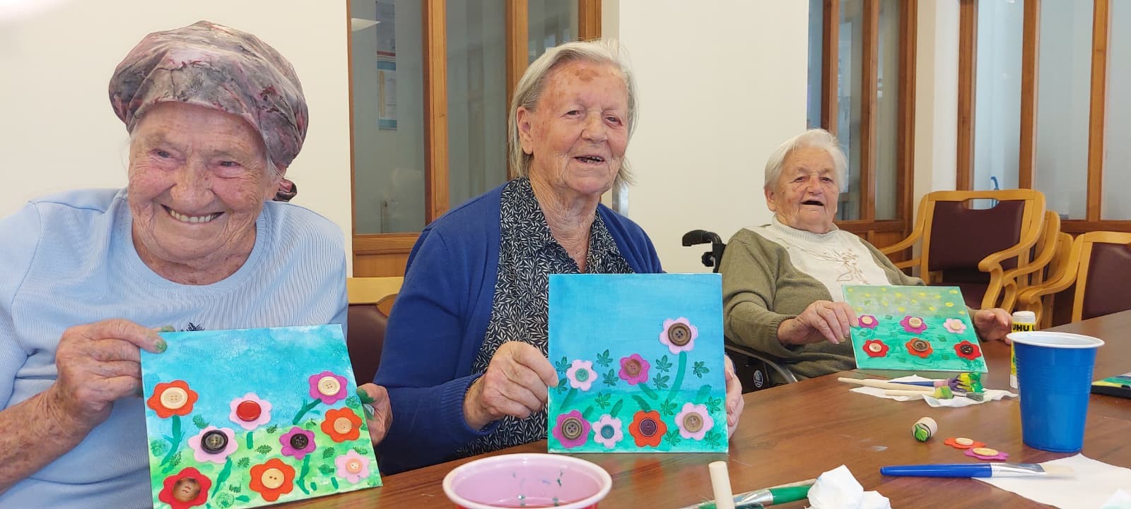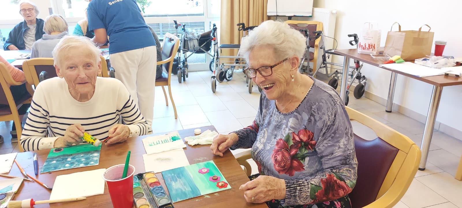 Der Herbst naht in großen Schritten, deshalb dachte sich Martina Fachsozialbetreuerin des SeneCura Frantschach, dass sie gemeinsam mit den Bewohner:innen den Sommer festhalten möchte. Bunte Blumenbilder wurden gestaltet, die die Bewohnerzimmer in der kalten und dunklen Jahreszeit auffrischen sollten. Die Bewohner:innen stellten sich als wahre Künstler:innen heraus – die Bilder sind wunderschön geworden.